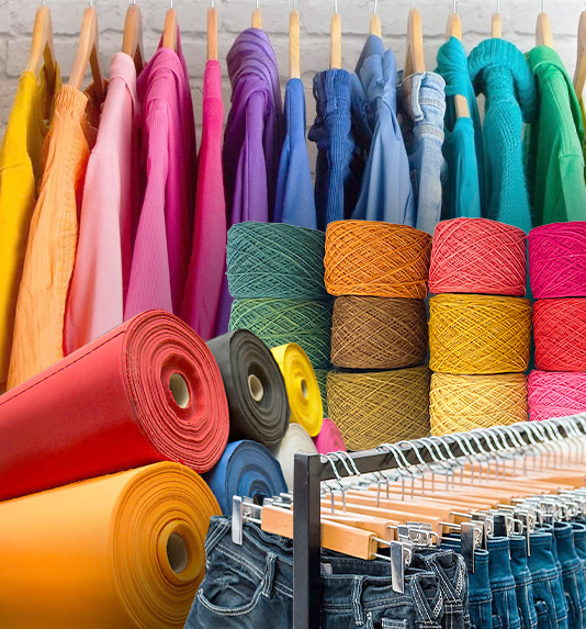 ropa, fibras, hilos y telas.